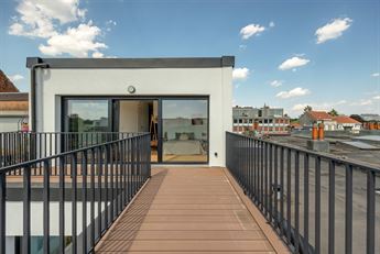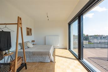 Het appartement vormt een nieuwe bouwlaag op een bestaand gebouw,