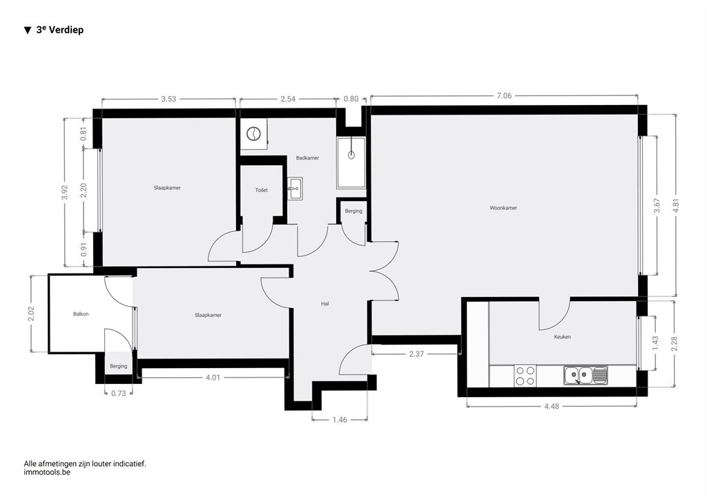 heteluchtoven, koelkast en veel kastruimte. Een extra inox werkblad en dubbele ramen maken