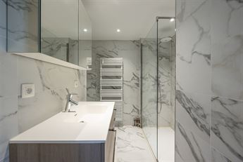 De badkamer en het aparte toilet werden in 2021 vernieuwd met