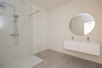 hoogrendementsglas en ingebouwde ventilatie. De badkamer straalt luxe uit met een inloopdouche