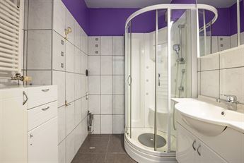 Verder heb je een apart toilet, en een badkamer met douchecabine