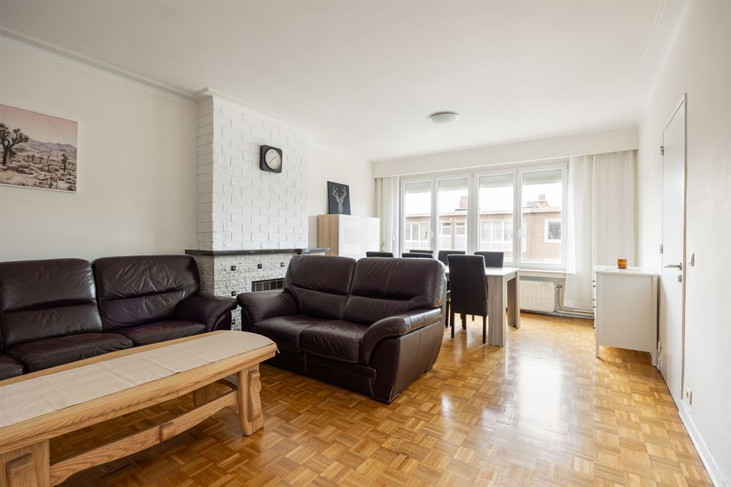 appartement van +-89 m². De leefruimte is open, licht en afgewerkt met charmante blokjesparket.