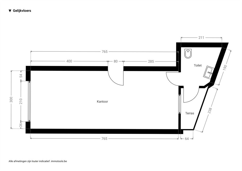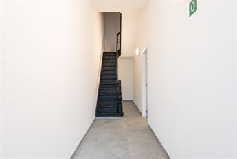 hier op het gelijkvloers dit instapklare kantoor. Je komt er binnen in de gemeenschappelijke