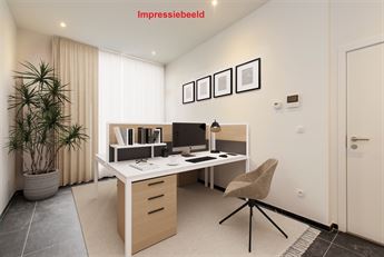 hier op het gelijkvloers dit instapklare kantoor. Je komt er binnen in de gemeenschappelijke