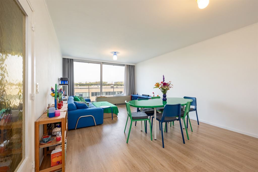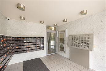In een groot, verzorgd appartementsgebouw vind je op het vijfde