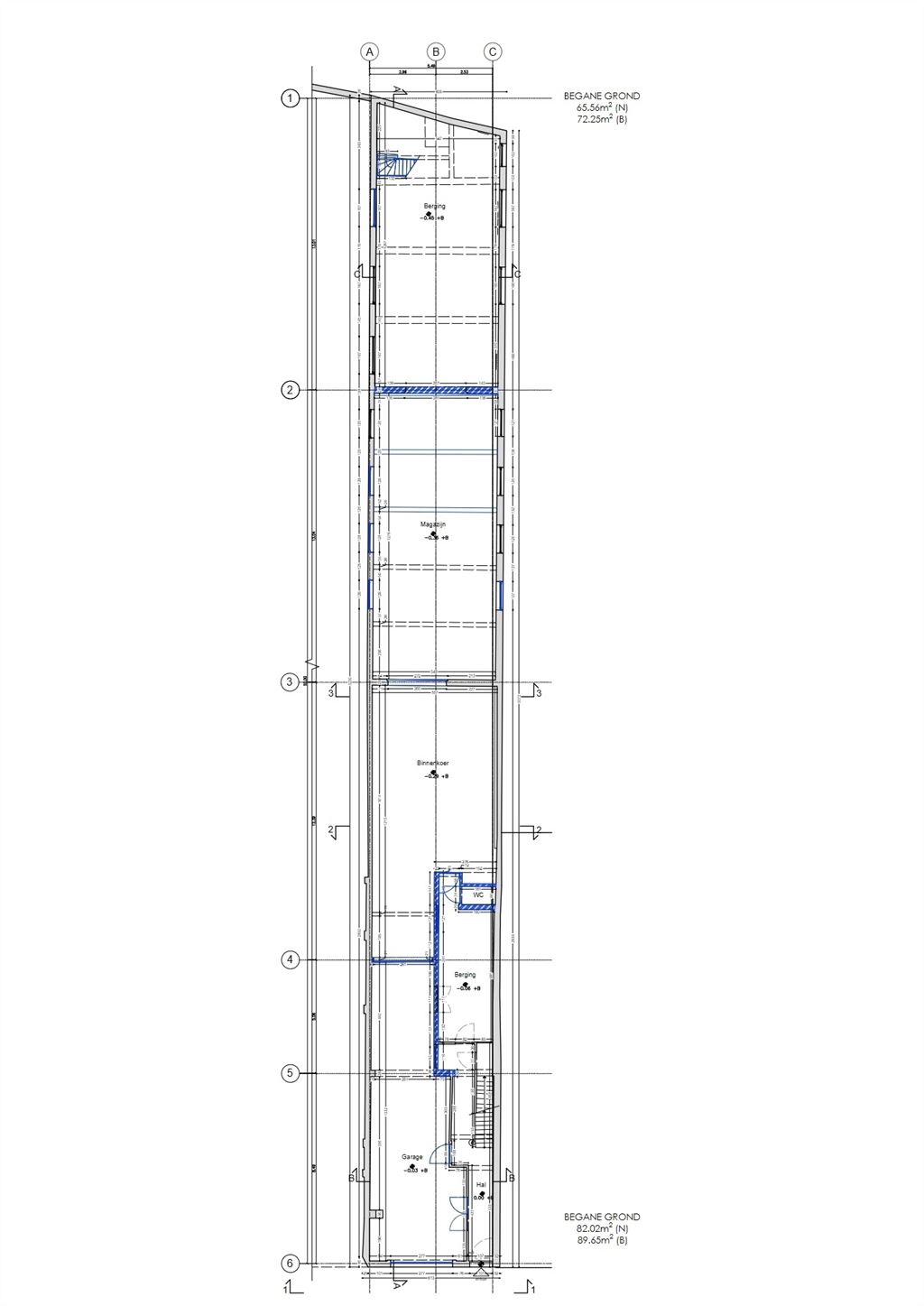 • magazijn op betonstructuur, verdeeld over 3 etages