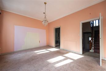 Op de eerste verdieping straalt de leefruimte grandeur uit: plafonds met sierlijsten, een royale planchetvloer en grote ramen voor veel licht. De tussenkamer met elegante boog leidt naar de ruime keuken, die op renovatie wacht maar boordevol mogelijkheden zit. Aansluitend is er een terras, voor een koffiepauze in de zon.