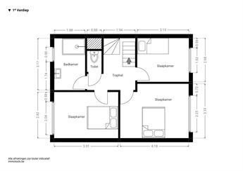 De eerste verdieping telt drie slaapkamers, allemaal met een