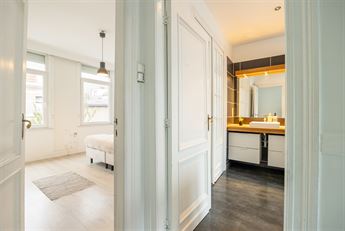 De tweede verdieping telt nog twee slaapkamers: een grote slaapkamer