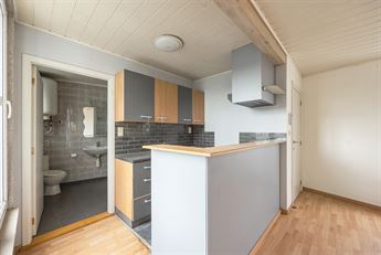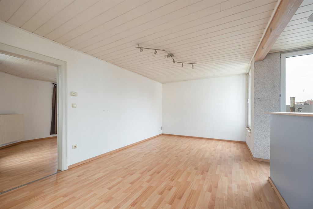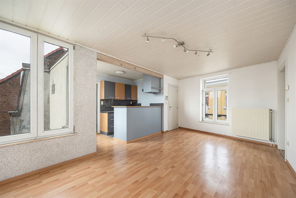 Aansluitend vind je de open keuken van 6m², die volledig te vernieuwen is – ideaal om een
