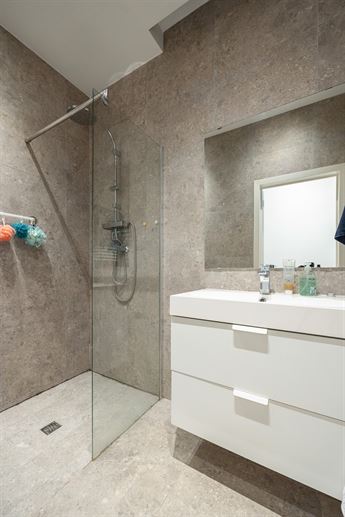 inloopdouche, lavabo, handdoekenradiator en twee slaapkamers. De master bedroom met aparte