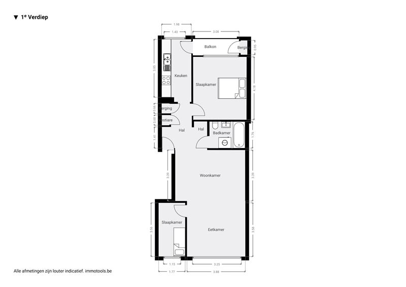 charmante appartement met twee slaapkamers vind je op het gelijkvloers van een