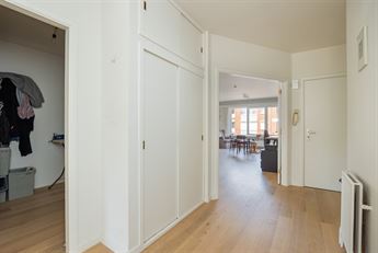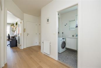 doorloopt. In de ruime inkomhal heb je een vestiairekast, via de dubbele glazen deur ga je naar