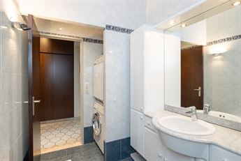 verlichting, handdoekradiator en een handig hoekje met aansluiting voor wasmachine en droogkast.
