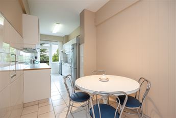 en zelfs ruimte voor een ontbijttafel. Via de keuken wandel je zo het zonnige terras op – zuidgericht,