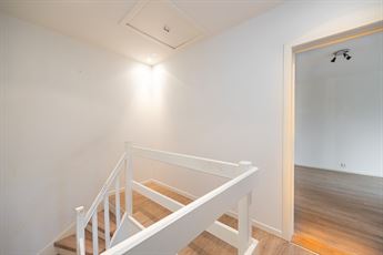 De slaapkamer bevindt zich achteraan en sluit aan op een handige berging met vernieuwde combi-ketel en ruimte voor proviand of schoonmaakmateriaal. De aansluitende badkamer is volledig betegelde, fris en functioneel ingericht. Ze is voorzien van een ruime douchecabine, lavabomeubel, spiegelkast met verlichting, toilet en aansluitingen voor was- en droogmachine. Ook hier zorgt een raam voor natuurlijke verluchting én licht.