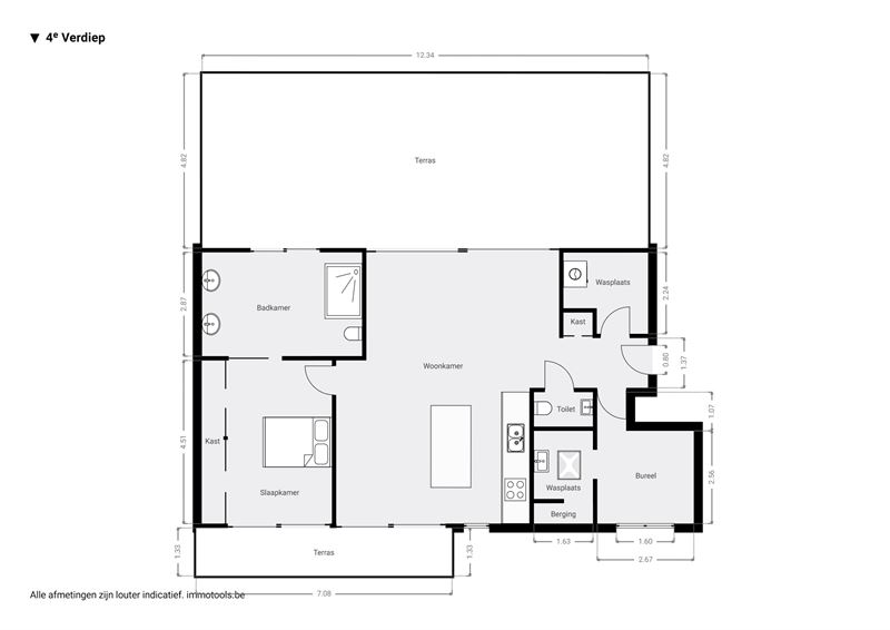 slaaphoek mits een kleine aanpassing aan de indeling. De compacte badkamer is volledig betegeld