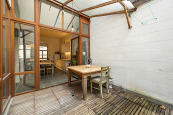 Achter de keuken heb je toegang tot de gezellige half overdekte