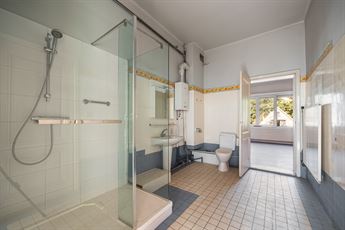 Op de eerste verdieping straalt de leefruimte grandeur uit: plafonds met sierlijsten, een royale planchetvloer en grote ramen voor veel licht. De tussenkamer met elegante boog leidt naar de ruime keuken, die op renovatie wacht maar boordevol mogelijkheden zit. Aansluitend is er een terras, voor een koffiepauze in de zon.