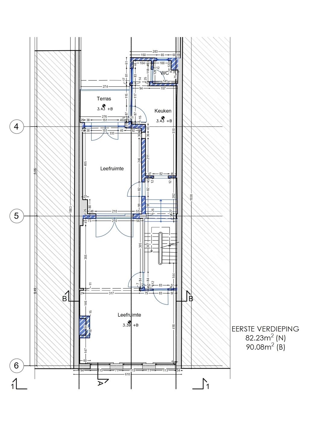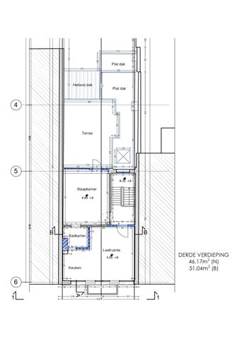De tweede verdieping telt drie kamers en een royale badkamer – ideaal voor een gezin of wie graag ruim woont. Op de derde verdieping vind je nog drie kamers én een tweede terras van 16,8m², met zicht over de binnenkoer en het magazijn.