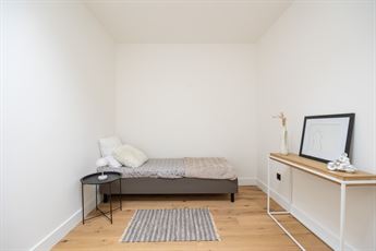 Achter de badkamer bevindt zich de eerste slaapkamer, afgewerkt