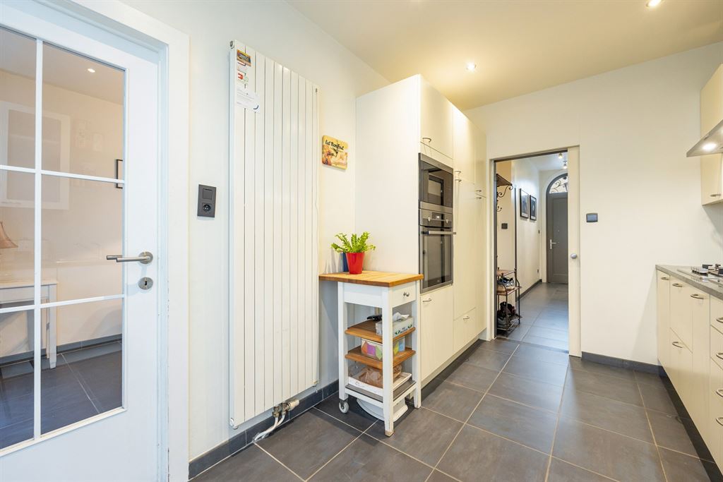 aansluitende keuken op tegelvloer. De volledig geïnstalleerde keuken (met vernieuwde toestellen)