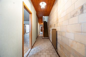 houten trap achteraan meteen de aandacht. Links bevindt zich de gezellige leefruimte met authentieke