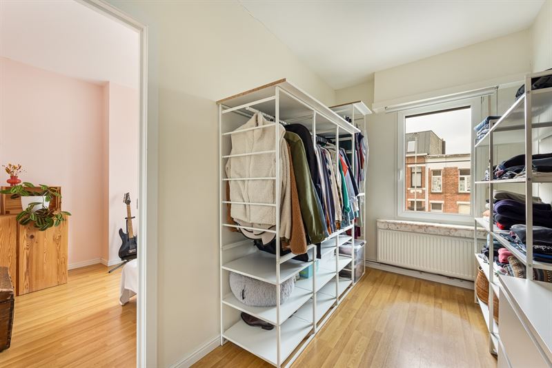 Verder naar boven bevinden zich de slaapkamers. Op de eerste verdieping zijn de kamers afgewerkt met een onderhoudsvriendelijke laminaatvloer. Beide slaapkamers zijn ruim en verzorgd. Aan de straatzijde ligt de master bedroom, terwijl de tweede slaapkamer zich aan de rustige achterzijde van de woning bevindt. Het gaat om twee volwaardige, comfortabele kamers. Op de tweede verdieping bevindt zich de bureauruimte, afgewerkt met een vinylvloer. Deze ruimte bestaat uit twee delen en kan, indien gewenst, opnieuw opgesplitst worden in twee volwaardige kamers. Je kan ze ook perfect gebruiken als één grote kamer met een ensuite dressing. Aan de achterzijde zijn bovendien ingemaakte kasten voorzien, wat zorgt voor extra praktische bergruimte.