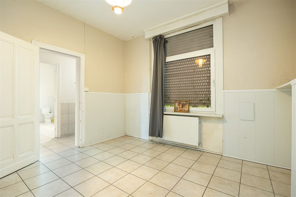 Achter de landelijke gevel schuilt een woning met karakter en tal van mogelijkheden. Het gelijkvloers omvat een ruime leefruimte van 50m² met tegelvloer, schuifraam en veel lichtinval — ideaal om open te trekken naar tuin of terras. Via de eetkamer bereik je de keuken en aansluitende badkamer (met bad, lavabo en toilet).  Verder zijn er twee slaapkamers (12m² en 15m²) op het gelijkvloers, en een uitgestrekte zolderruimte van 150m², perfect om extra kamers of een hobbyruimte te creëren.