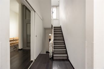 muur. Voor wie niet op eigen kracht de trap op kan: de woning heeft een lift tussen de