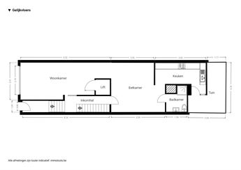 woonkamer, de badkamer op de tussenverdieping en een slaapkamer op de eerste verdieping.