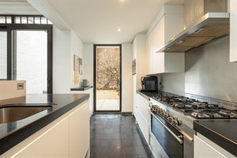 slaapkamers. De groene, mediterraanse tuin achteraan biedt een oase van rust in de stad — met