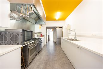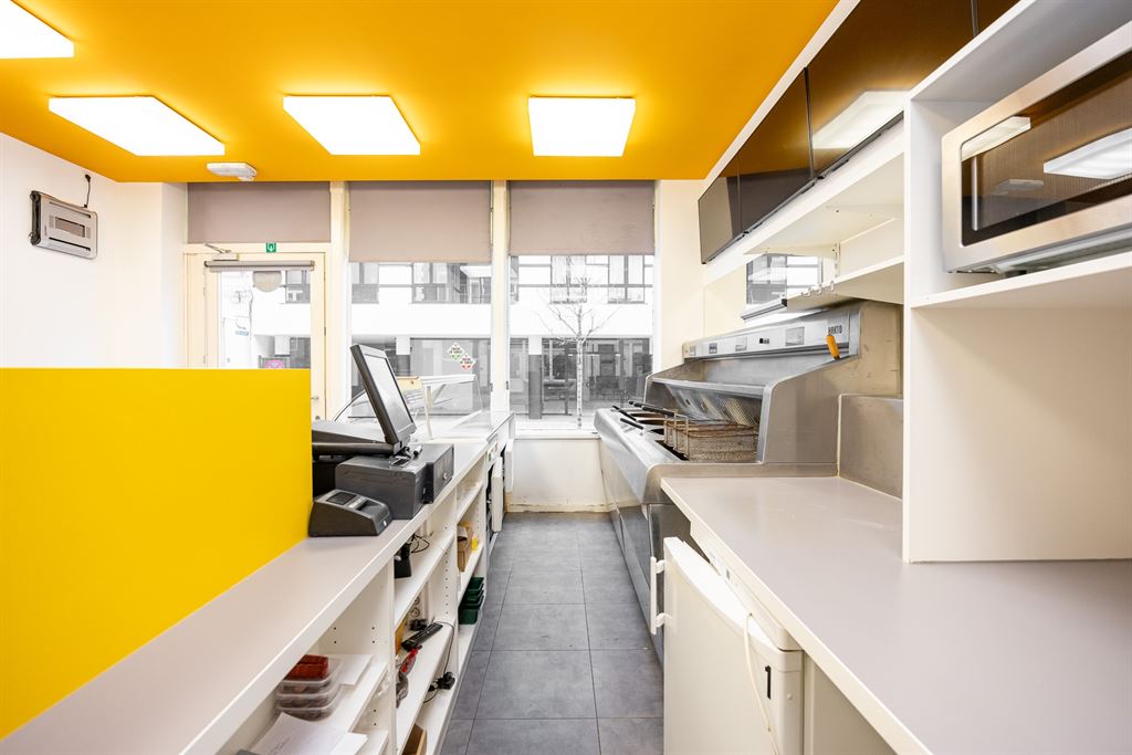 De aparte inkom voor de frituur brengt je in een commerciële ruimte van ca. 110 m², volledig ingericht en 14 jaar geleden gerenoveerd. Alle apparatuur is aanwezig en klaar voor gebruik. Je hebt hier plaats voor 10 à 15 zitplaatsen, grote toog, een overzichtelijke counter en ingebouwde kasten. Achteraan bevindt zich de professionele keuken, met o.a. dubbele spoelbakken, groot gasfornuis, meerdere ovens, koelingen en veel opbergruimte. Via de achterdeur wandel je naar de grote, onderhoudsvriendelijke tuin, ideaal als extra zitruimte in de zomermaanden.