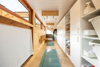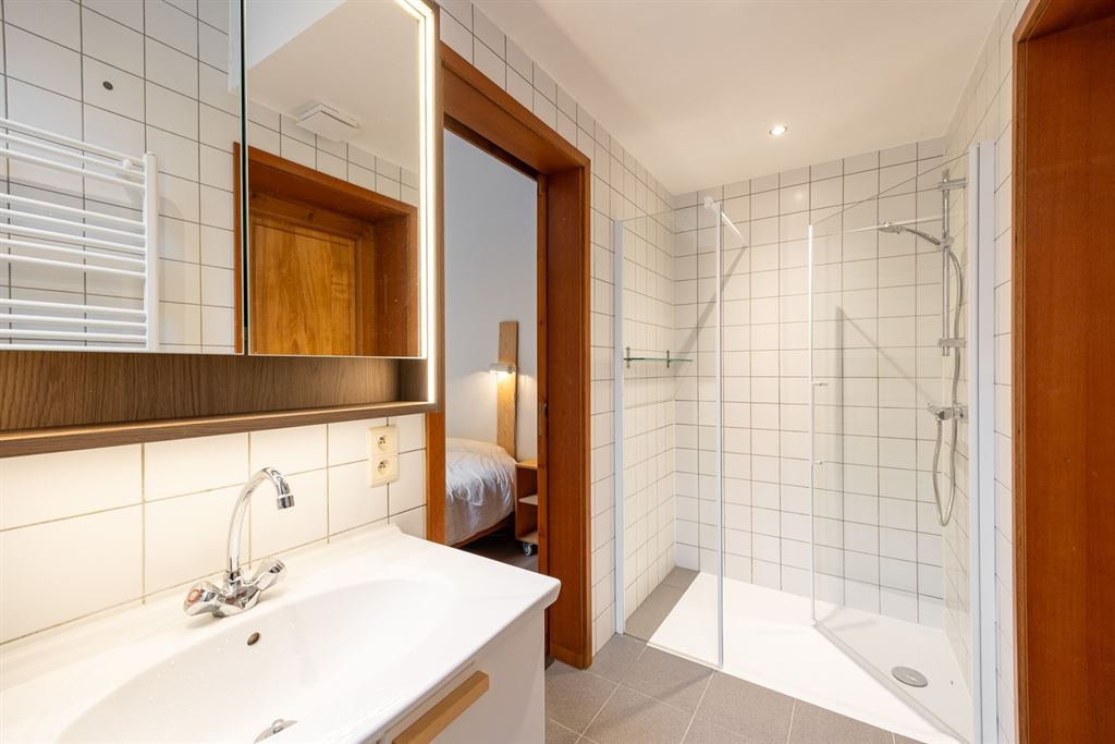 Op de tussenverdieping bevindt zich nog een wasruimte met ingemaakte kasten en praktische wasinstallatie.