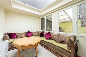 Woonkamer met veel licht, keuken en aangrenzende stadskoer