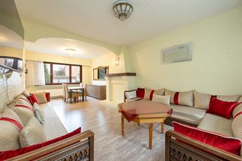 Je betreedt de woning via de inkomhal op retrotegel, met directe toegang tot het gastentoilet en links de ruime leefruimte. De kamerbrede ramen zorgen voor een overvloed aan natuurlijk licht in deze aangename woonkamer met salon en eetruimte. Aansluitend vind je de aparte keuken, voorzien van veel kastruimte, dubbele spoelbak, gasvuur, dampkap en betegelde wanden. Vanuit de keuken bereik je de zonnige, onderhoudsvriendelijke stadskoer. Achter de leefruimte bevindt zich de veranda — een ideale plek om te ontbijten of te gebruiken als tweede zithoek.