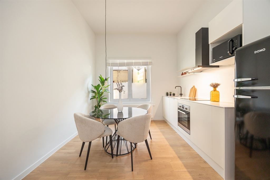 Op zoek naar een volledig gerenoveerd gelijkvloers appartement op een toplocatie in Antwerpen-Noord? Dan zit je hier helemaal goed. Dit lichtrijke appartement combineert een strakke, hedendaagse afwerking met een praktische indeling en een fijn terras achteraan. Ideaal voor starters, jonge koppels of alleenstaanden die hun eerste eigen stek zoeken in een levendige buurt, vlak bij alles wat de stad te bieden heeft.