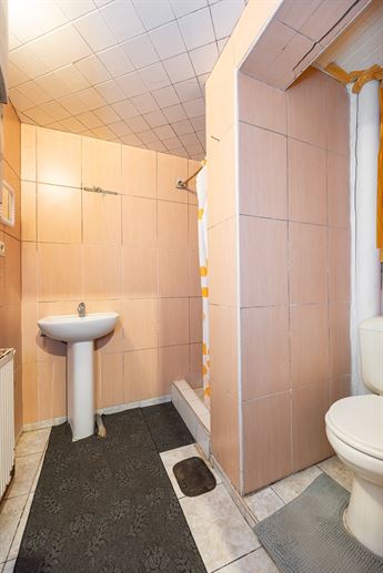 De grote slaapkamer vooraan is voldoende ruim voor een dubbel bed en kastenwand. De tweede kamer – nu ingericht als een soort doorloopruimte – kan dienen als bureau, dressing of tweede slaaphoek mits een kleine aanpassing aan de indeling.   De compacte badkamer is volledig betegeld en voorzien van een douche, lavabo en toilet. Praktisch en functioneel, met nog ruimte om er een frisse update van te maken.