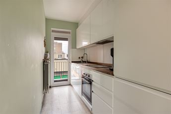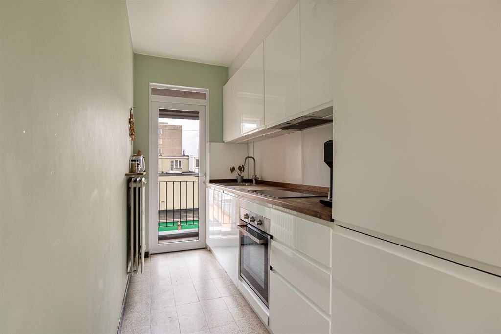 Op de tweede verdieping van een verzorgd, kleinschalig gebouw kom je binnen in de leefruimte, dewelke zonder twijfel het hart van het appartement is. Dankzij de grote raampartijen én de lichtkoepel geniet je hier van een overvloed aan natuurlijk licht. Er is meer dan voldoende plaats voor een ruim salon en een volwaardige eettafel. De laminaatvloer zorgt voor een warme, onderhoudsvriendelijke afwerking.