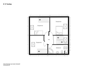 Op de derde verdieping bevinden zich nog drie volwaardige slaapkamers, waarvan twee in duplexvorm met ingemaakte bureau’s en kasten — ideaal voor tieners, hobbyruimte of thuiskantoor. De derde badkamer is uitgerust met ligbad met douchescherm, lavabo en toilet.