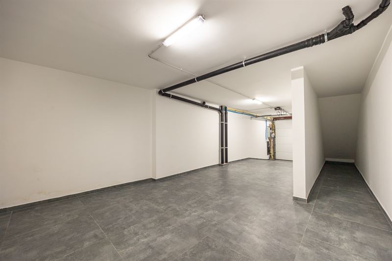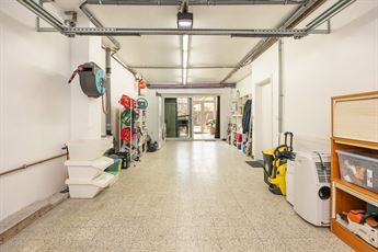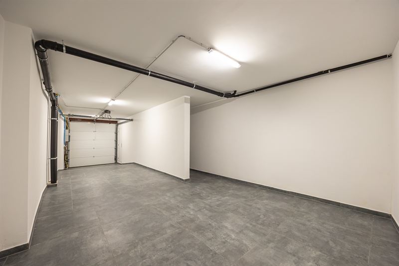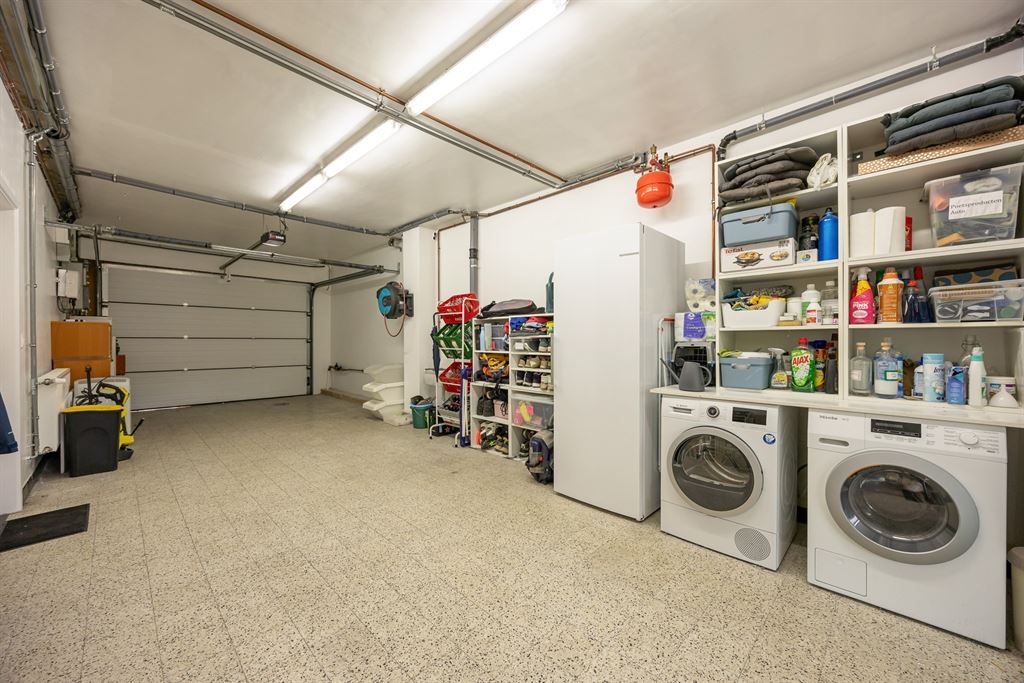 Binnenkomen doe je via een ruime inkomhal met een glazen designdeur die meteen zorgt voor een open en lichtrijk gevoel. De ingemaakte kasten houden alles netjes uit het zicht, terwijl de trap je uitnodigt om verder te ontdekken. Op het gelijkvloers zit een enorme troef: een inpandige garage van ca. 38,5 m² met zeeën van opbergruimte. Aansluitend ligt een polyvalente ruimte die perfect kan dienen als hobbyruimte, praktijk, speelkamer of zelfs thuiskantoor. Dankzij de grote raampartijen en de directe connectie met de tuin voelt deze ruimte allesbehalve secundair aan. Ook een aparte bureauruimte maakt thuiswerken hier bijzonder aangenaam.