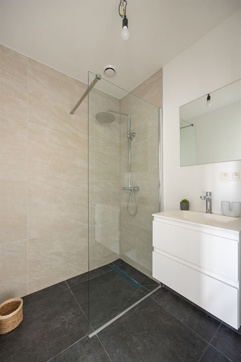 Op de tweede verdieping bevinden zich drie volwaardige slaapkamers, allemaal lichtrijk en netjes afgewerkt. Ideaal voor een gezin, maar evengoed perfect in te richten als dressing of bureau. De badkamer is ruim en stijlvol, met ligbad, inloopdouche en dubbele wastafel – strak, licht en helemaal van nu. Daarnaast is er nog een tweede douchekamer, wat het comfort alleen maar verhoogt.