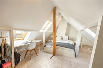 Nog een trapje hoger vind je een gezellige zolderruimte met karaktervolle balken en veel lichtinval. Ideaal als extra slaapkamer, hobbyruimte of rustige werkplek.