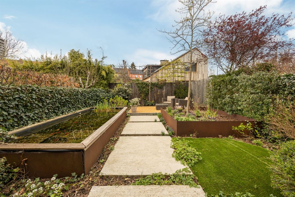 Achteraan wacht een verrassend mooie, onderhoudsvriendelijke tuin. Een combinatie van groen, terrassen en gezellige hoekjes zorgt ervoor dat je hier op elk moment van de dag een fijne plek vindt. De vijver en volwassen beplanting geven de tuin een unieke, rustgevende sfeer. Dit is zo’n buitenruimte waar je meteen wil blijven hangen, van eerste koffie tot lange zomeravonden.