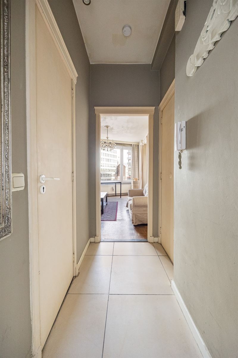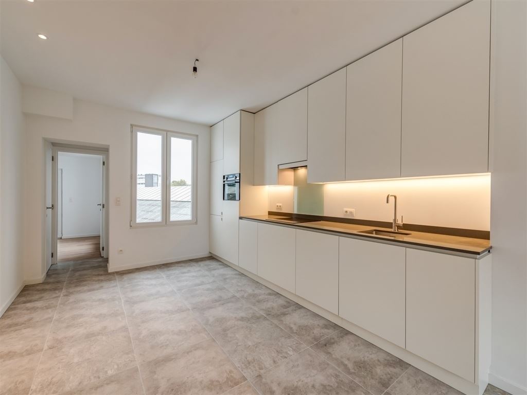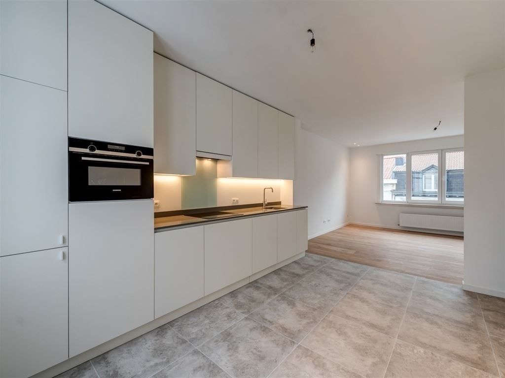 Het appartement maakt deel uit van een totaal gerenoveerd (2018) gebouw. Bij de renovatie werd veel aandacht besteed aan afwerking en materiaalkeuze. Zo zijn er ingemaakte kasten waar nodig, keukenkasten tot aan het plafond en ingewerkte spots. De combinatie van volhouten parket en grijs‑beige tegelvloeren zorgt voor een harmonieus en tijdloos geheel. De indeling is bijzonder functioneel, waardoor elke vierkante meter optimaal benut wordt.