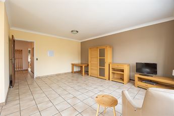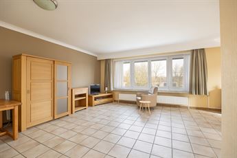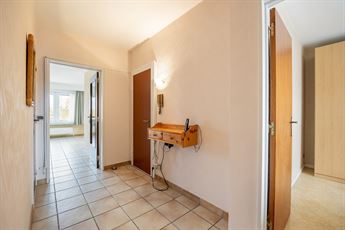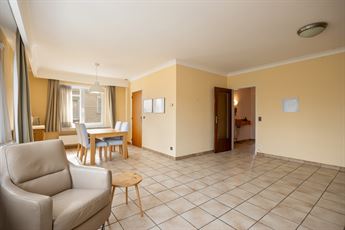 Je komt het appartement binnen via de veiligheidsdeur. De inkomhal met betegelde vloer heeft voldoende ruimte voor een vestiairekast. Vanuit deze hal heb je toegang tot de verschillende ruimtes van het appartement. De leefruimte van zo’n ca. 40 m² is heerlijk open, licht en zonder twijfel het hart van het appartement. Dankzij de hoekligging en de vele ramen geniet je hier van een aangename hoeveelheid natuurlijk licht en een open uitzicht. Je hebt hier meer dan genoeg plek voor een gezellige zithoek én een grote eettafel. De betegelde vloer is praktisch in onderhoud en de elektrische rolluiken – die in het hele appartement aanwezig zijn – zorgen voor extra comfort.