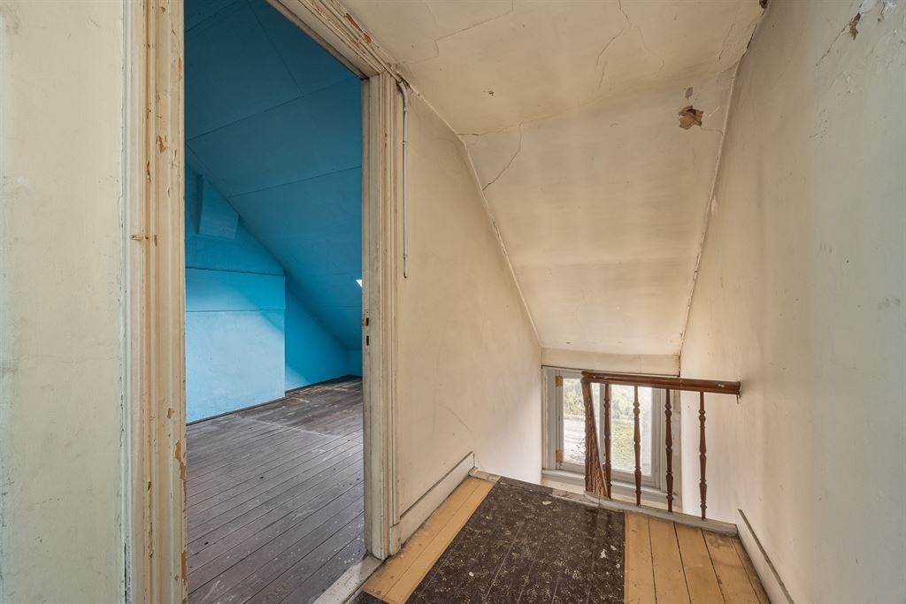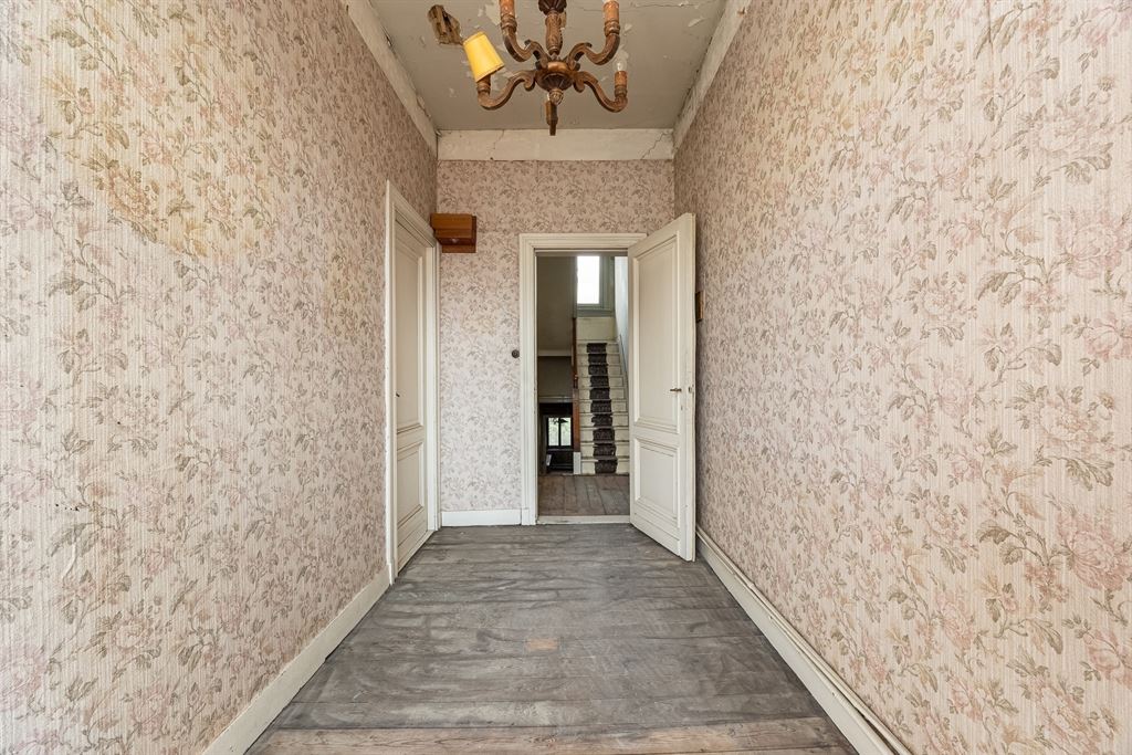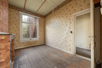 Achter de charmante gevel schuilt een woning die vraagt om een grondige renovatie, maar tegelijk heel veel teruggeeft aan wie er z’n schouders onder zet. In de inkomhal valt meteen de mooie vloer op, samen met de authentieke trap en de originele wandafwerking. Doorheen de woning keren die karaktervolle elementen terug: plankenvloeren, sierschouwen, hoge plafonds en royale ruimtes die je vandaag nog helemaal naar je hand kunt zetten. Net dat maakt dit zo’n boeiend pand: je koopt hier geen afgewerkt verhaal, maar een karakterhuis dat je nog volledig naar je eigen smaak kunt herschrijven.