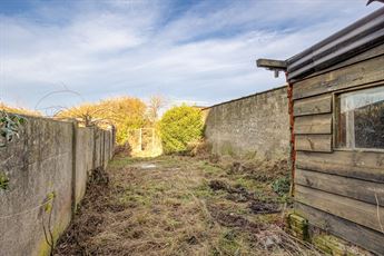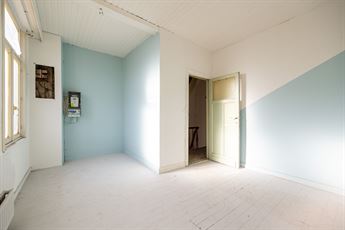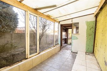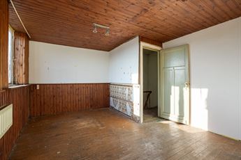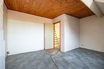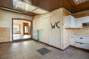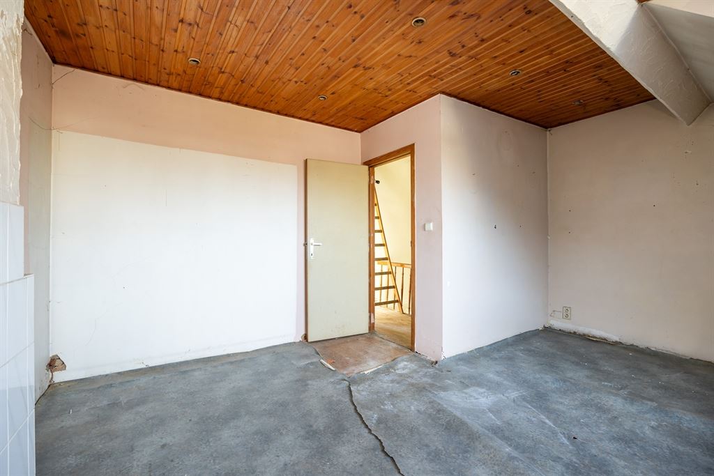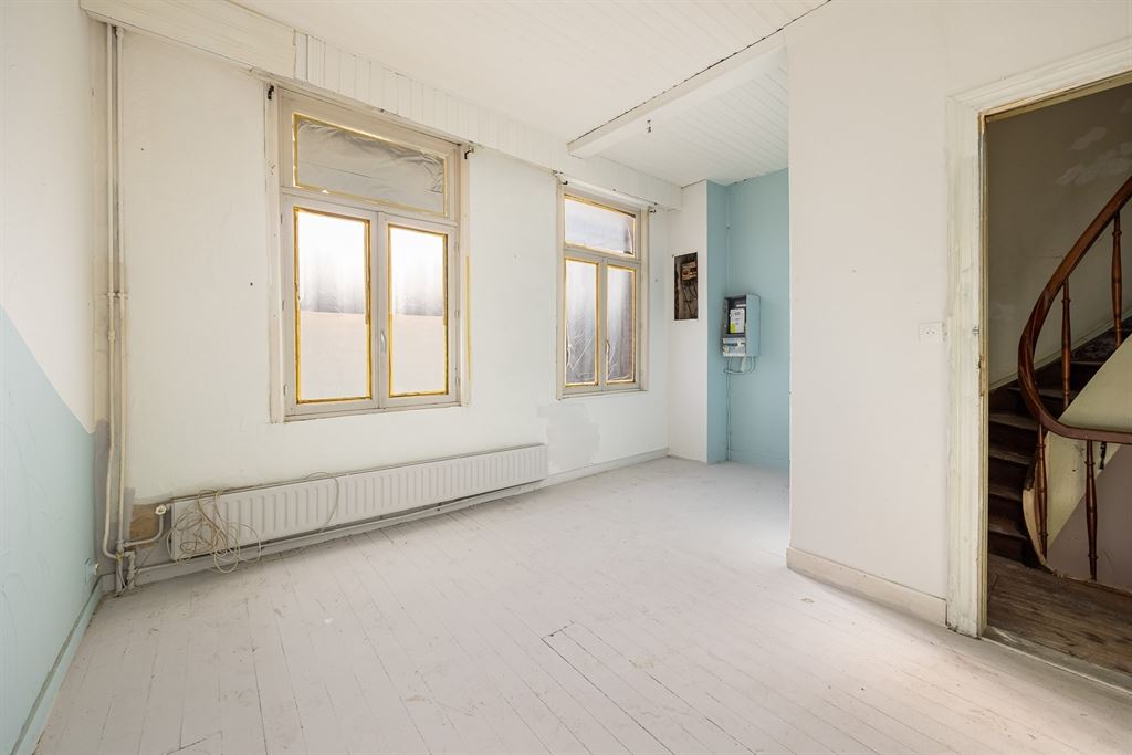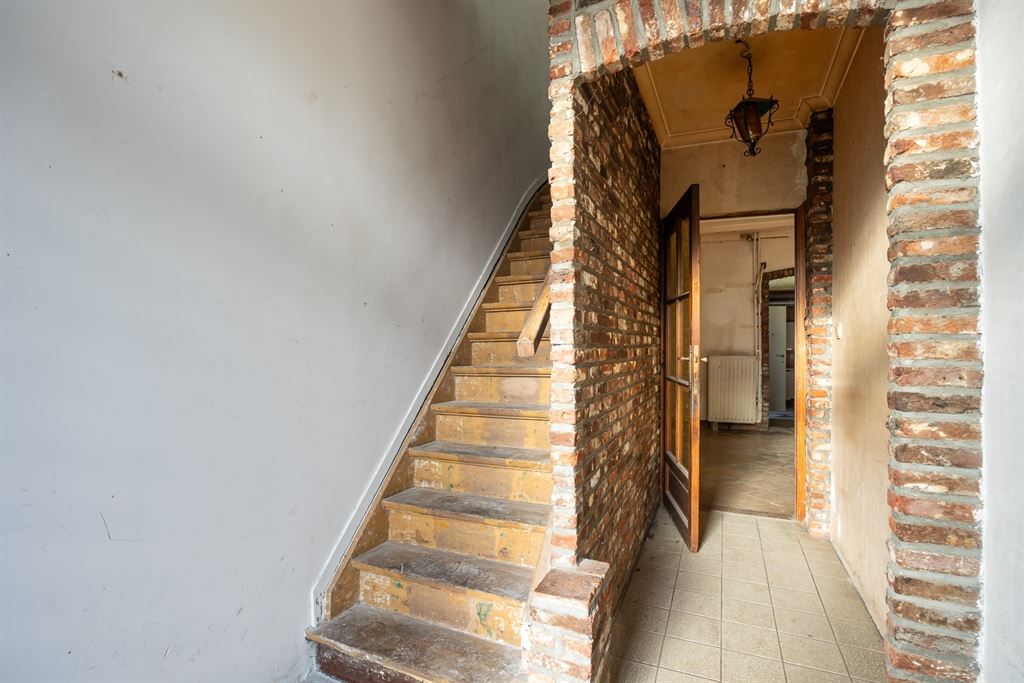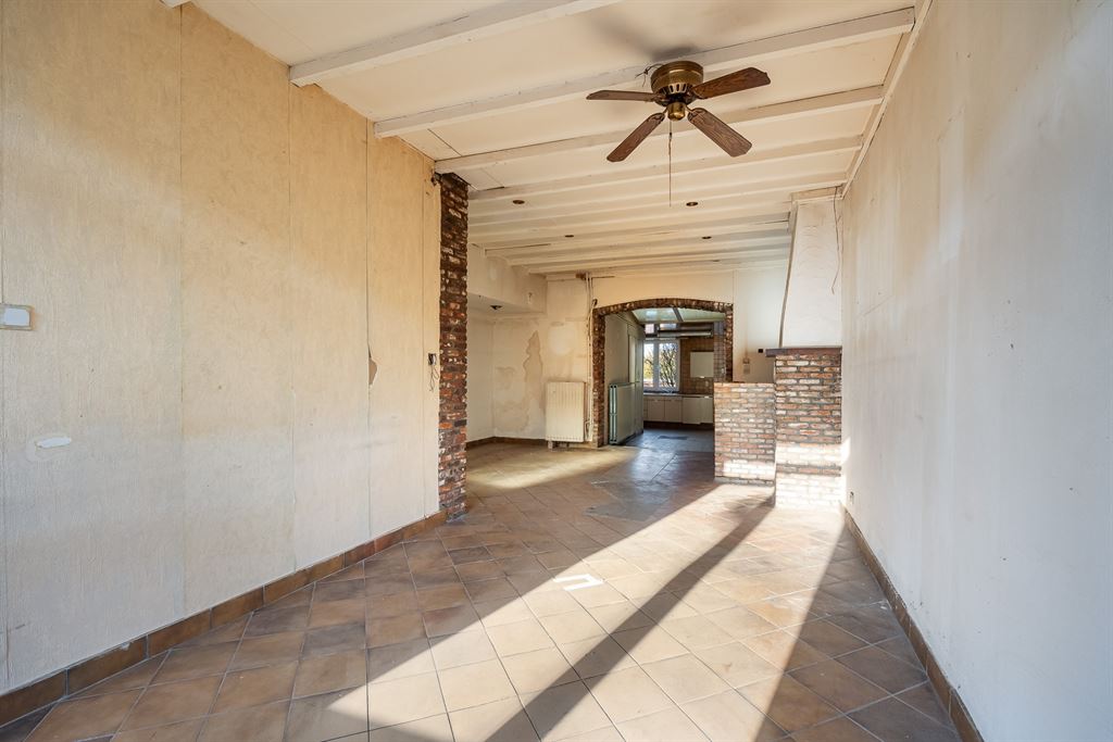 Via de inkomhal kom je binnen in de ruime woonkamer die doorloopt tot in de open keuken achteraan. De leefruimte heeft tonnen potentieel om een warme, open en moderne zithoek te creëren. Achteraan bevindt zich de open keuken met zicht op de tuin — een ideale plek voor een royale leefkeuken. Naast de keuken vind je de badkamer met bad en lavabo, én een apart toilet. Vanuit de achterbouw stap je zo de veranda in, die uitgeeft op de tuin.